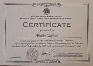 Kafedranın müəllimləri Məhəmməd Füzulinin 530 illiyinə həsr olunmuş Beynəlxalq elmi konfransda məruzə ilə çıxış ediblər.