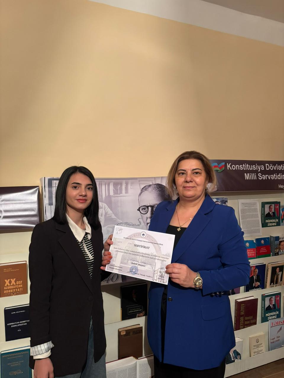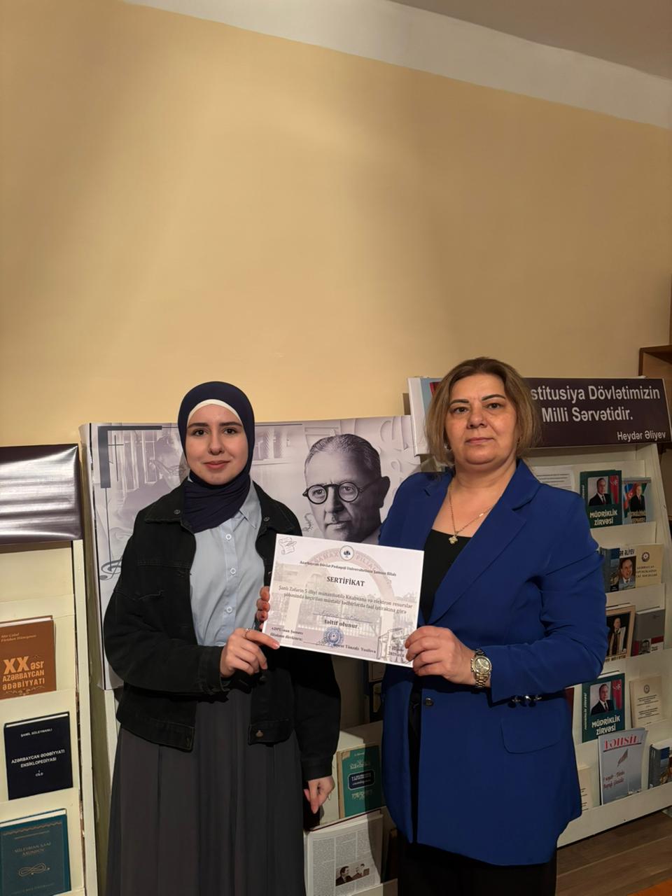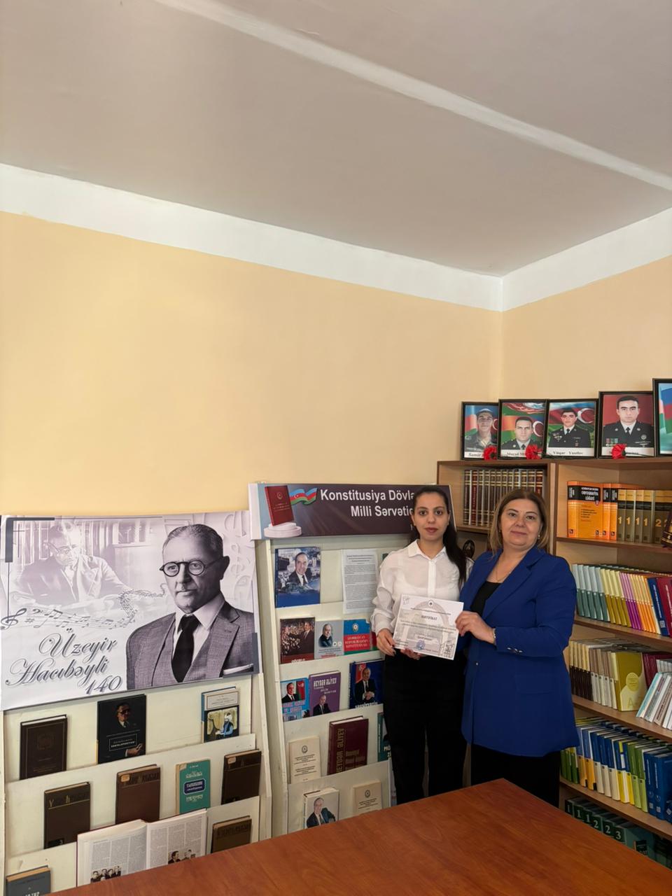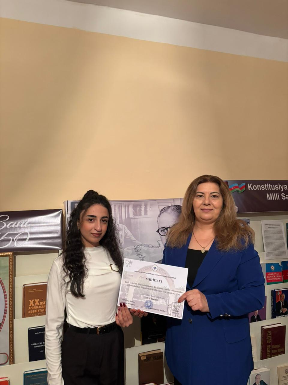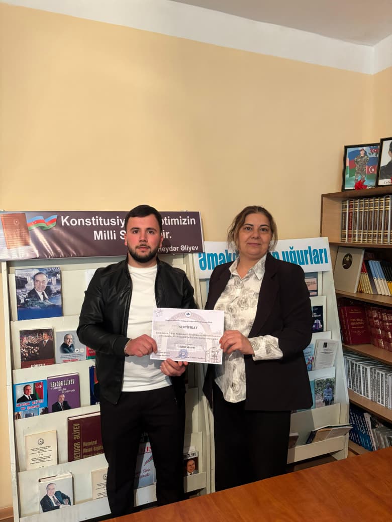 ADPU-nun Şamaxı filialının “Kitabxana və elektron resurslar şöbəsi”ndə Şanlı Zəfərin 5 illiyi münasibətilə keçirilən silsilə tədbirlərdə fəal iştirak edən tələbələrə sertifikatlar təqdim olunub. Qeyd edək ki, “Kitabxana və elektron resurslar şöbəsi” tərəfindən irəli sürülən bu kimi təşəbbüslər tələbələrin ictimai fəallığının artırılmasına, onların vətənpərvər ruhda formalaşmasına və gələcək tədbirlərdə daha aktiv iştirakına stimul verir.