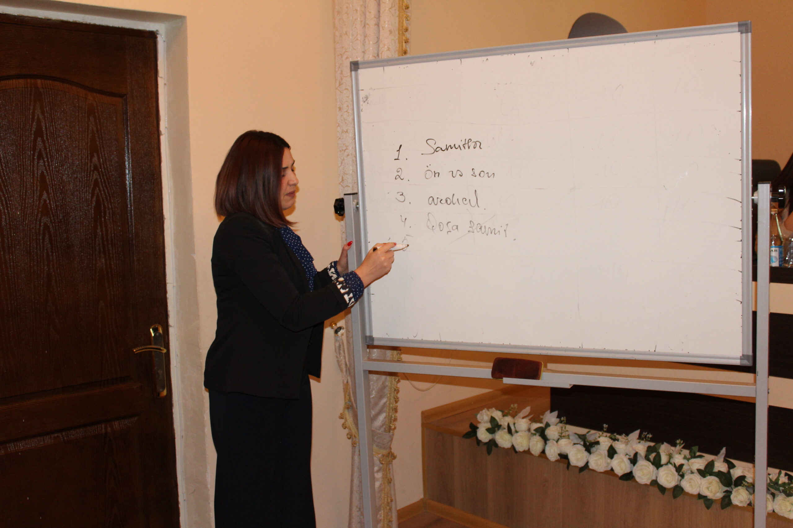 Daha sonra təlimçi Şəfəq Nağıyeva çıxış edərək MİQ imtahanının strukturu, müsabiqə mərhələləri və qiymətləndirmə meyarları haqqında ətraflı məlumat verib. O, imtahanda tez-tez qarşılaşılan sualları tələbələrlə birlikdə təhlil edərək onların cavablandırılması üzrə praktik tövsiyələr təqdim edib. Təlimçi həmçinin imtahan mərhələlərində namizədlərin üzləşə biləcəyi çətinliklərdən və bu çətinliklərin aradan qaldırılması üçün effektiv hazırlıq strategiyalarından danışıb.
