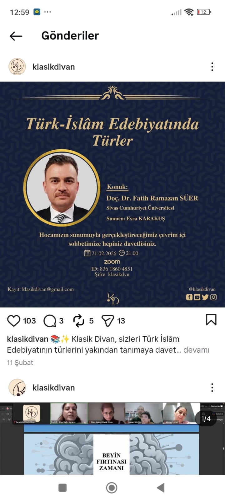 ADPU-nun Şamaxı filialının Dil, ədəbiyyat və onların tədrisi texnologiyası kafedrasının müəllimi Türkan Hüseynova 21 fevral 2026-cı il tarixində “Klassik divan” (“Klasik divan”) adlı YouTube kanalında canlı təşkil olunan “Türk-İslam ədəbiyyatında janrlar” (“Türk-İslam Edebiyatında Türler”) adlı seminarda iştirak etmişdir.