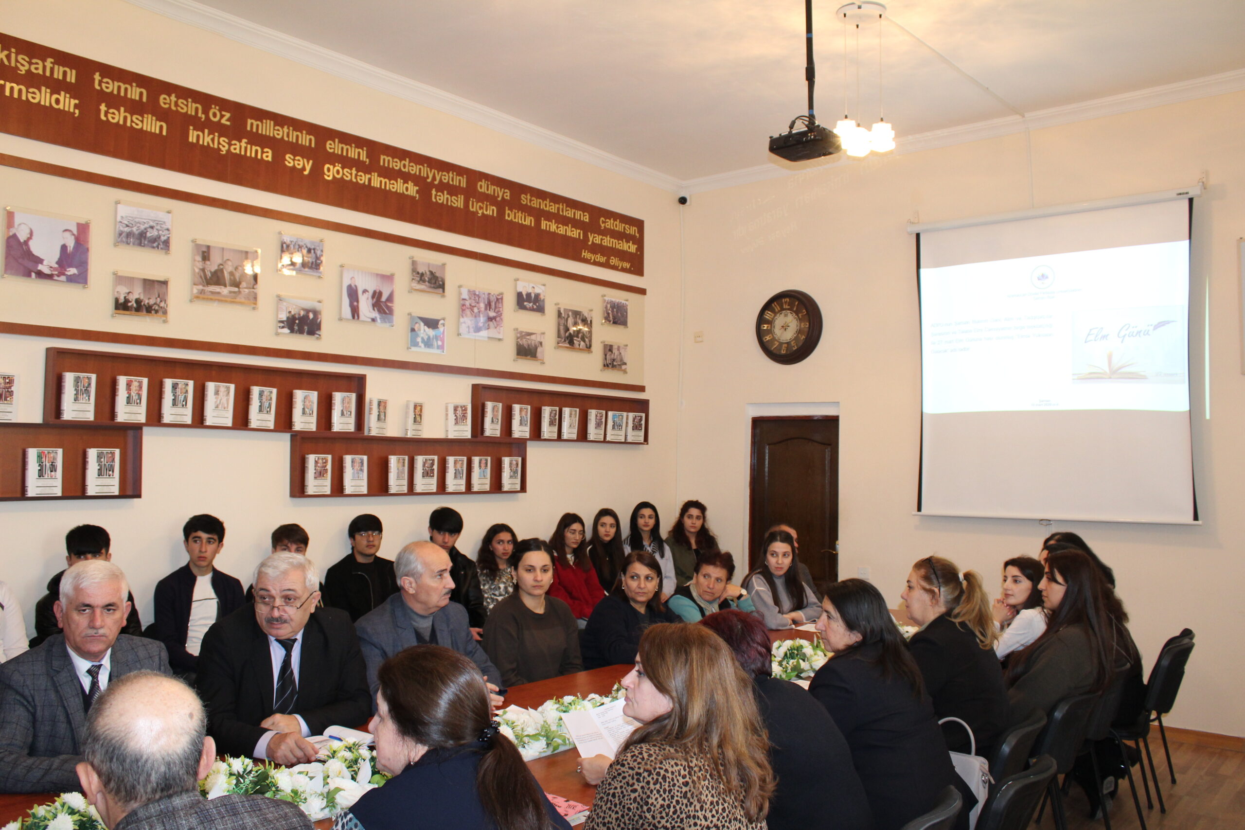 Azərbaycan Dövlət Pedaqoji Universitetinin Şamaxı filialında Gənc Alim və Tədqiqatçılar Şurası ilə Tələbə Elmi Cəmiyyətinin birgə təşkilatçılığı ilə 27 Mart – Elm Gününə həsr olunmuş “Elmlə yüksələn gələcək” adlı tədbir keçirilib.
